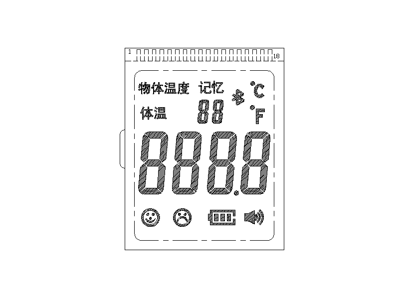 紅外測(cè)溫槍顯示屏|額溫槍LCD|體溫槍液晶屏HTP68461(中文小尺寸版)