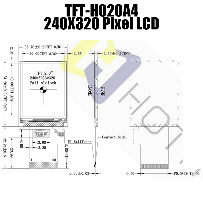 • 型號: 2寸TFT彩屏/240*320分辨率/SPI接口/全視角/超高亮600cd/m2/TFT-H020A4QVIST6N40