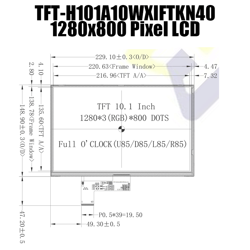 Number of Pixels | 1280(H)*3(RGB)* 800(V) | dots | ||