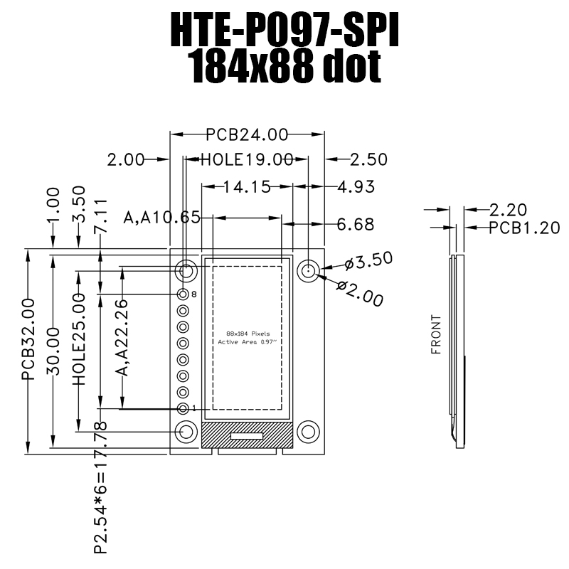 0.97寸 88x184分辨率 COG SSD1680 電子紙顯示模塊帶設(shè)備控制PCB模組 HTE-P097-SPI