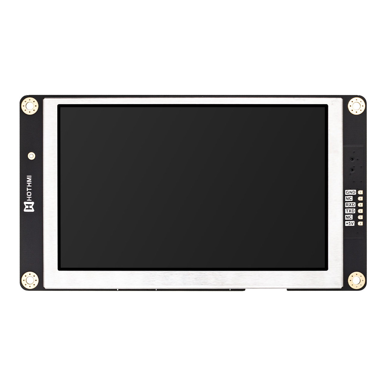 HTM-H050A1-UART-A5是一款 5.0英寸 IPS TFT 顯示屏,分辨率為 800x480 像素。它是一款帶有智能顯示功能的顯示屏,有UART接口,人機(jī)信息交換功能。除了控制器之外,我們的 HMI 顯示器還集成了 MCU 功能。MCU 通過(guò) UART 接口接收主控制板(客戶端)發(fā)送的命令,然后根據(jù)這些預(yù)定義的指令顯示文本、圖像或動(dòng)畫(huà)。主控制板(客戶端)上的 MCU 不需要專門針對(duì)圖像顯示的復(fù)雜編程或執(zhí)行。您可以使用我們的 GUI 設(shè)計(jì)軟件 - UI 編輯器輕松創(chuàng)建文本、圖像或動(dòng)畫(huà)。無(wú)需編程技能。