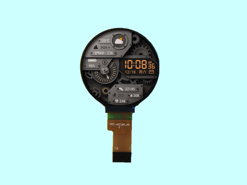 1.3寸圓形TFT|分辨率320*320高清|MIPI接口|TFT-H013A1HQIST3N16 TFT圓形 320x320 36.12x39.16x1.50 1.3 1.3 直徑33.12 全視角 350cd/m2 16 MIPI 圓形超薄 -20~70度 2.8V ST7796DW