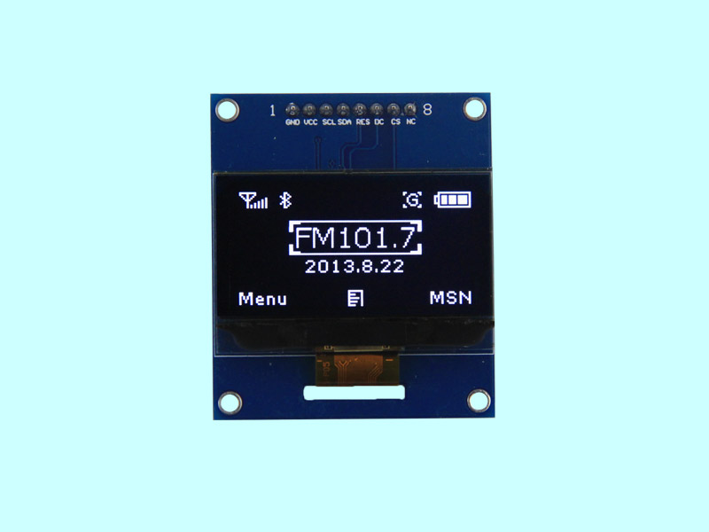 1.54寸OLED/128*64分辨率/LCM-OLED0154T1WS4LN08M_V01 OLED 128x64 42.4x48.7x2.8 1.54 1.54 全視角 8PIN SPI 抗靜電ESD 8KV -40~70℃ 2.8V SSD1309