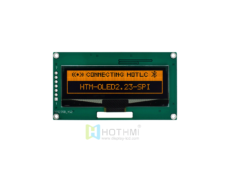 2.23寸橙色128x32 OLED模組/Arduino/SPI接口/7針連接器/SSD1305控制器 HTM-OLED2.23-SPI-O OLED 模組 128x32 72.0x39.7x6.0 57.01x15.1 2.23 IPS全視角 90cd/m2 7 pin SPI 防靜電ESD 8KV -40~85℃ +3.3 V SSD1305